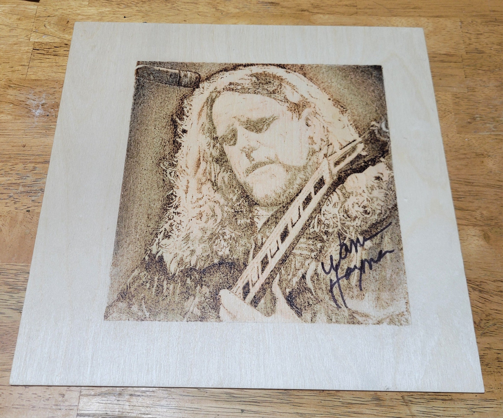 Warren Haynes Custom Hand Crafted Pyrography Autographed Artwork. Created by Mica Yonker at My Box of Rain. Autographed by Warren after his performance with Gov't Mule at the Peoria Blues and Heritage Festival on August 30th 2025. 12inchx12inch. We accept custom orders!